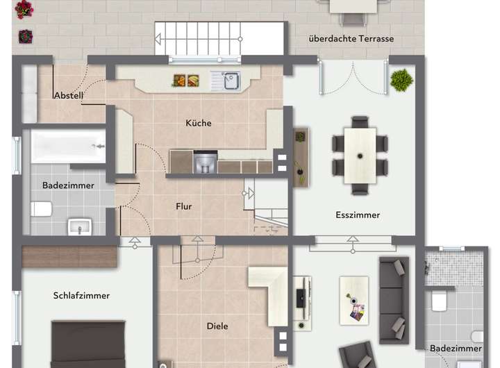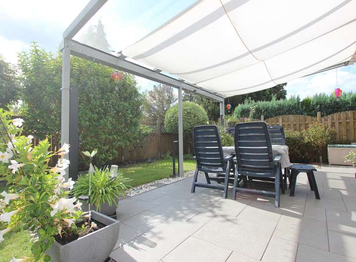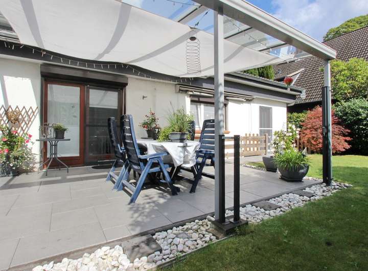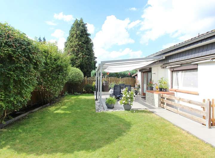 Abgerundet wird dieses Angebot durch die beiden auf dem Grundstück befindlichen PKW-Stellplätze und das gepflegte, uneinsehbare Grundstück mit Süd-Terrasse.