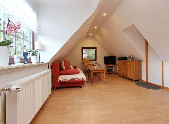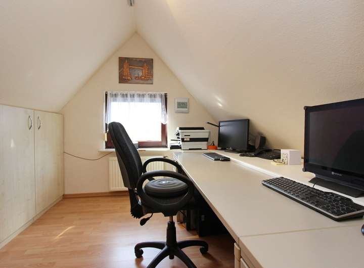 Ausreichend Nutzfläche bietet Ihnen das ausgebaute Dachgeschoss, welches über einen praktischen Büroraum mit Einbauschränken sowie einen Gästeraum verfügt. Von hier aus gelangen Sie zudem zu weiteren Nutzfläche unter dem in 2007 erneuerten Dach inkl. Wärmedämmung.