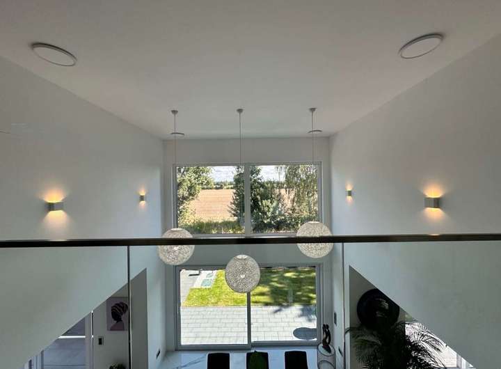 Steuern Sie Beleuchtung, Jalousien, Heizung, Sicherheitstechnik und Multimedia bequem per App oder Sprachbefehl – ob von zu Hause oder unterwegs. Individuelle Szenen lassen sich speichern und mit einem Fingertipp aktivieren – vom stimmungsvollen Abendlicht bis zur automatischen Morgenroutine..