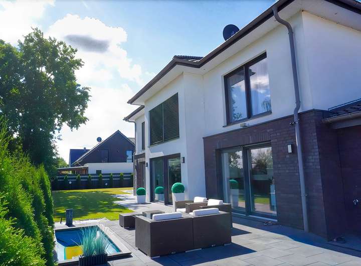 Der Verkauf erfolgt inklusive Pool, sofern gewünscht. Ob moderner Infinity-Pool, klassisches Schwimmbecken oder Naturpool – Gestaltung und Ausstattung können Sie gemeinsam mit dem Bauträger abstimmen.