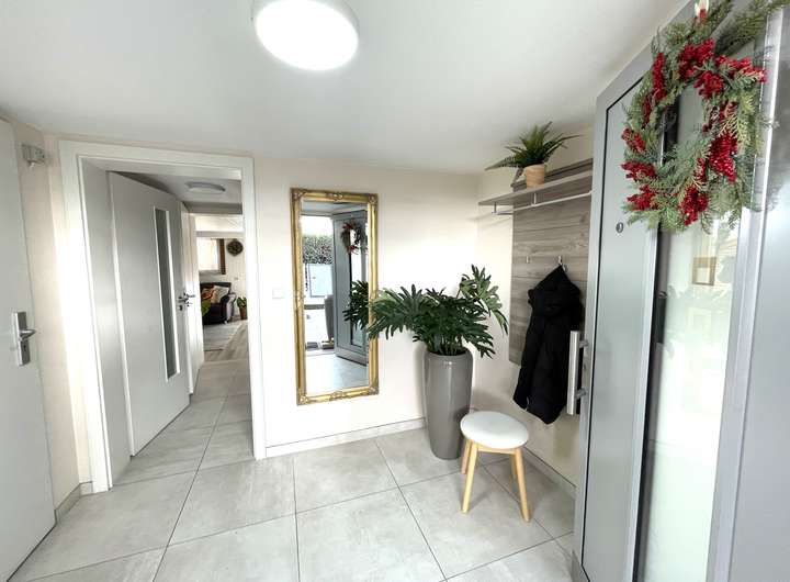 Dieses Reihenmittelhaus überzeugt durch eine gelungene Raumorganisation und clevere Nutzung der verfügbaren Fläche. Schon beim Betreten entfaltet sich ein durchdachtes Konzept. Im unteren Geschoss empfängt Sie eine großzügige Diele mit ausreichend Platz für Garderobe, Schuhschränke und Zusatzabstellflächen. Von dort gelangen Sie unmittelbar in den großen Hauswirtschafts- bzw. Hausanschlussraum. Zudem befinden sich auf dieser Ebene (Ebene 0) ein Duschbad sowie ein lichtdurchfluteter Raum, der individuell genutzt werden kann und Zugang zum Garten bietet. Eine massive Holztreppe führt hinauf zur Ebene 1, wo sich das Wohnzimmer mit Zugang zum Balkon sowie die Küche und ein schönes Esszimmer befinden. In Ebene 2 erwarten Sie drei Schlafräume und ein weiteres Badezimmer. Das Dachgeschoss wurde zu einem multifunktionalen Raum ausgebaut und bietet zusätzlich separate Abstellflächen. Außen lädt ein kleiner, liebevoll gestalteter Garten mit Pergola, Markise und Gartenhaus zum Spielen und Entspannen ein. Abgerundet wird das Angebot durch eine großzügige Garage im nahegelegenen Garagenhof.