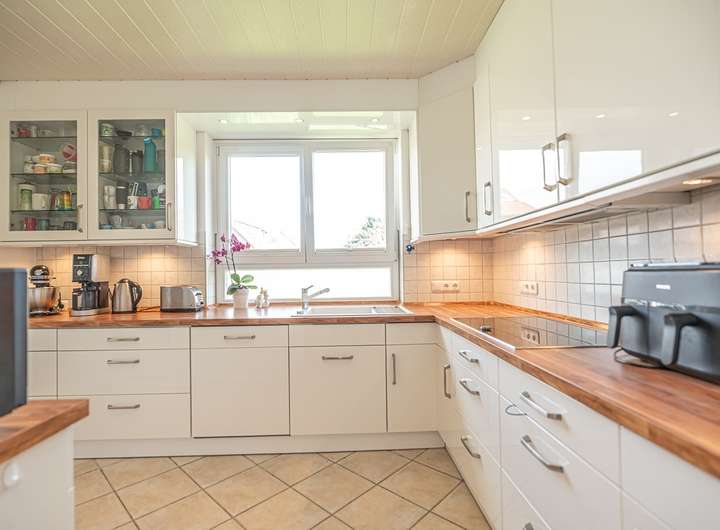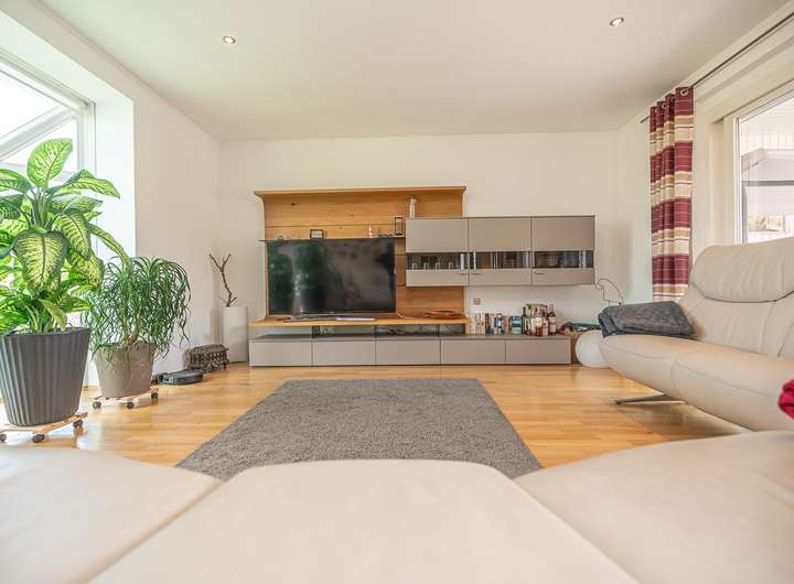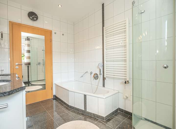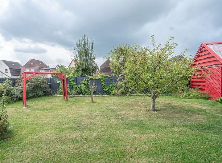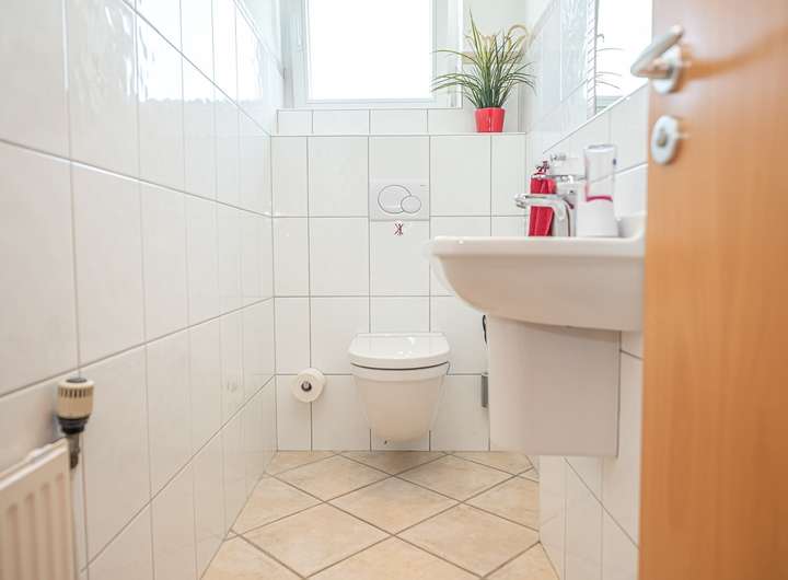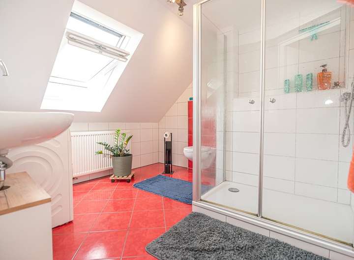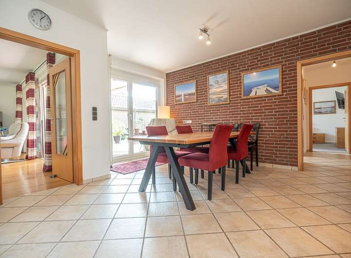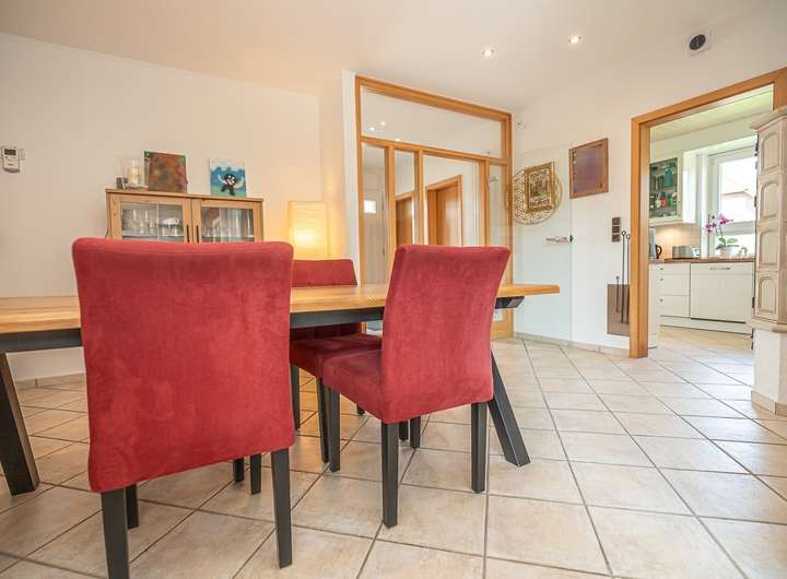 Ein Highlight des Objekts ist die Terrasse, die sich ideal für gemütliche Abendstunden oder gesellige Zusammenkünfte eignet. Das Haus verfügt über insgesamt sechs Zimmer, darunter vier Schlafzimmer, die ausreichend Platz für eine Familie oder ein großes Paar bieten. Zwei Badezimmer, eins mit Gäste-WC und ein Tageslichtbad mit Badewanne und Dusche, komplettieren die Ausstattung.