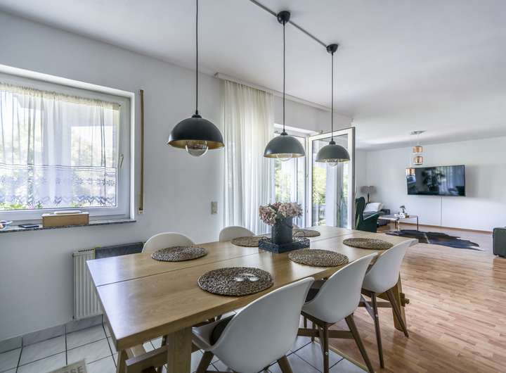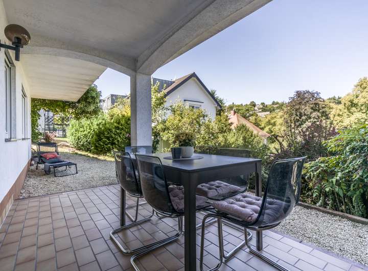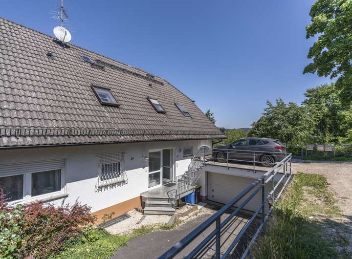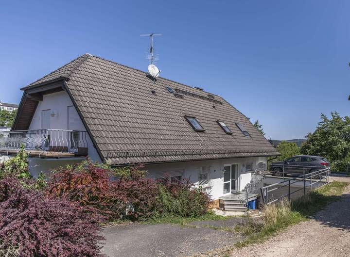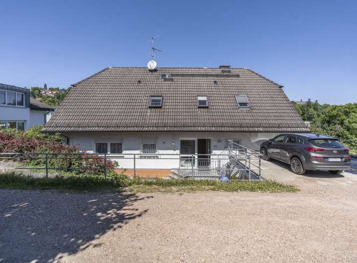 Zur Immobilie gehören vier Außenstellplätze sowie eine Doppelgarage – ein praktischer Pluspunkt in der innerstädtischen Lage. Das Grundstück besticht durch seine Größe und Hanglage mit Blick ins Grüne, die umliegende Bebauung besteht überwiegend aus Wohnhäusern mit ansprechender, historischer Architektur. Einkaufsmöglichkeiten, Schulen, der Kurpark und öffentliche Einrichtungen befinden sich in fußläufiger Entfernung.