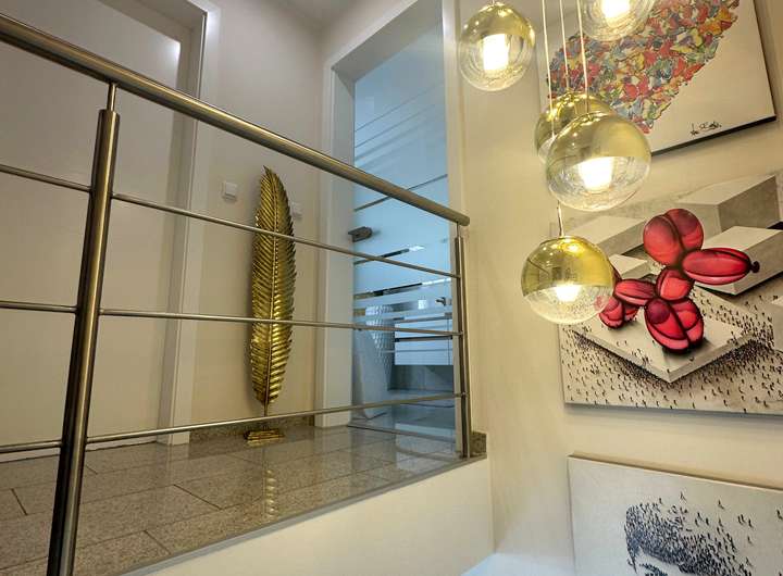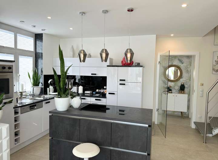 Haus 1 - Innenausstattung - - Wohnfläche ca. 106 m² zzgl. wohnlich ausgebauter Keller - 3 bis 4 Zimmer auf zwei Etagen - Modernisiertes Dusch- und Wannenbad im Obergeschoss - Gäste-WC im Erdgeschoss - Teilweise wohnlich ausgebauter Vollkeller mit zusätzlichem Bad - Großzügige Küche mit Einbauküche - Helles Wohnzimmer & angrenzendes Esszimmer - Außenrollläden im Erdgeschoss & Obergeschoss - Gas-Brennwertheizung - Modernisierungen - - Außendämmung der Fassade - Neueindeckung des Daches - Moder. Fenster - Erneuerte Heizungs- und Sanitäranlagen - Neuaufteilung der Innenräume - Modernisiertes Hauptbad - Außenbereich - - Grundstücksanteil ca. 500 m² (Sondernutzungsrecht) - Garten mit Obst- und Gemüseanbau - Terrasse / Sitzplatz im Freien - Garage mit angrenzendem Geräteraum __________________________________________________________________________ Haus 2 - Innenaustattung - - Wohnfläche ca. 112 m² auf zwei Vollgeschossen (ohne Schrägen) - 3 Zimmer, inkl. großzügigem Schlafzimmer & Ankleidezimmer - Offener Wohn- & Essbereich mit Wintergarten - Hochwertige Einbauküche mit zentraler Kochinsel (2022) - Komplett gefliester Boden mit Großformatfliesen (120×120 cm) - Gespachtelte Wände für glattes, modernes Finish - Freistehender Badewanne - Bodengleicher Wellnessdusche - Hochwertige Armaturen & Einbauten - Durchdachtes Lichtkonzept - Gäste-WC im Erdgeschoss - Fußbodenheizung im gesamten Haus - Modernisierungen (2022) - - Komplett neu gestaltetes Erdgeschoss - Neues Badezimmer im OG - Wintergarten mit modernem Beschattungssystem - Einbauschränke & hochwertige Details im gesamten Haus - Außenbereich - - Grundstücksanteil ca. 250 m² (Sondernutzungsrecht) - Große Terrasse mit stilvollem Pavillon / Grillplatz - Garten mit strukturierter Bepflanzung - Garage mit angrenzendem Geräteraum