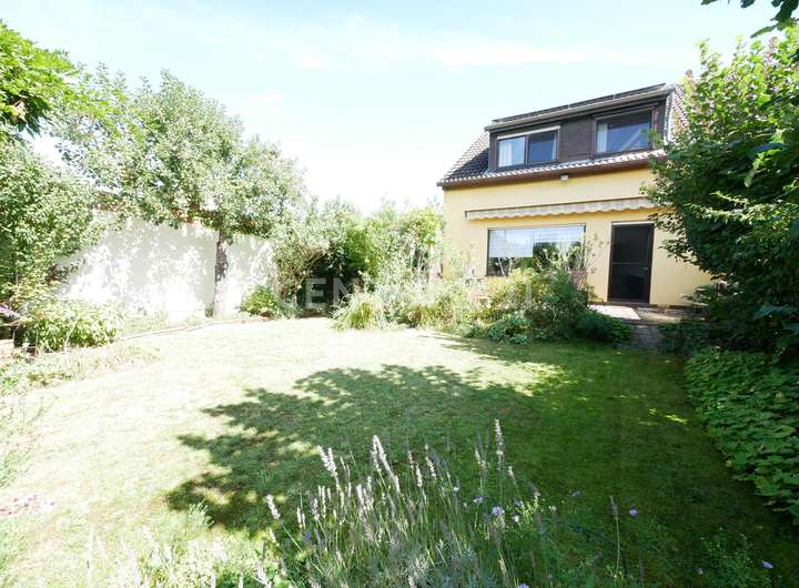 Zum Verkauf steht ein charmantes Reihenendhaus mit eingewachsenem Garten, ruhig aber dennoch zentral, in verkehrsberuhigter, gefragter Lage von Egelsbach. Dieses im Jahr ca. 1987 erbaute Haus bietet eine großzügige Wohnfläche von ca. 136,16 m². Ein Highlight der Immobilie ist der gepflegte Garten samt Terrasse in Südwestausrichtung, der auf einem Erbpachtgrundstück von ca. 302 m² liegt und zum Verweilen einlädt. Das Haus überzeugt durch einen großen hellen Wohnbereich samt Zugang zur Terrasse sowie in den Garten. Es bietet 6 Zimmer und verfügt über 1 Tageslichtduschbad mit Wanne sowie ein zusätzliches Gäste-WC für Ihre Besucher. Zur weiteren Ausstattung gehören ein Glasfaseranschluss sowie eine gemietete Solaranlage, welche zu übernehmen ist. Abgerundet wird das Angebot durch eine direkt von dem Grundstück zugängliche Garage samt Wallbox-Anschluss, die für sichere Parkmöglichkeiten sorgt, und einen praktischen Keller samt Außenzugang für ausreichend Stauraum. Des Weiteren gibt es auch einen, über eine direkte Treppe zugänglichen, Dachboden für vielseitige Optionen. Nutzen Sie die Gelegenheit, dieses gut gelegene Zuhause in Egelsbach zu erwerben.