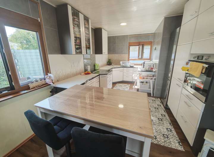 - moderne, helle Einbauküche angrenzend zum Wohnbereich