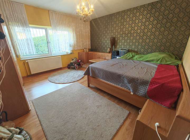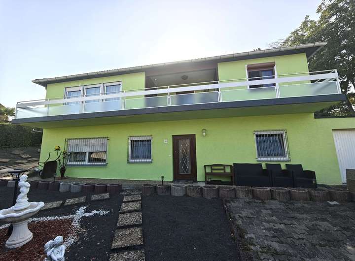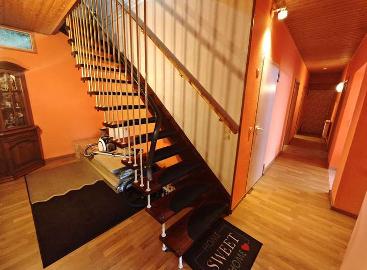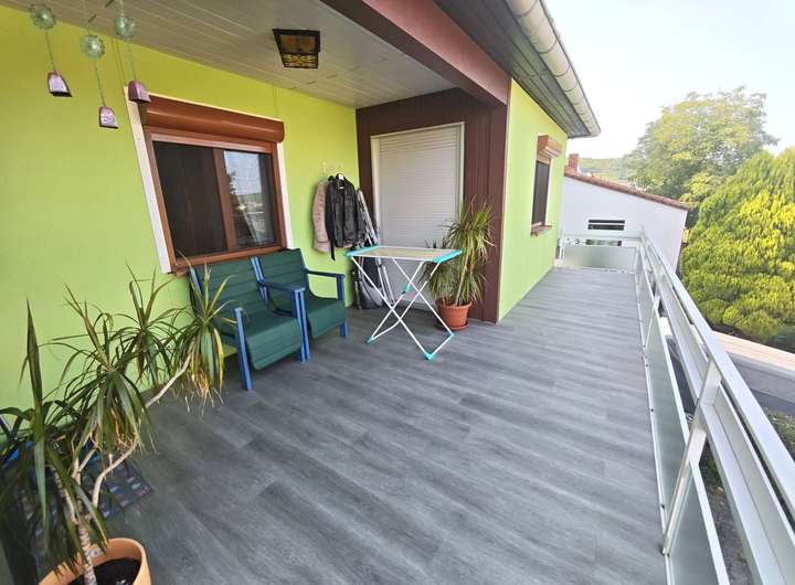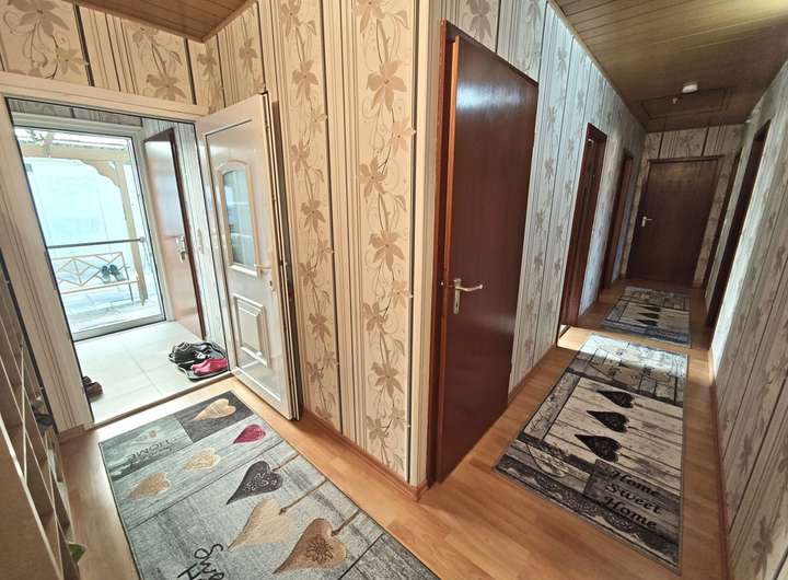 Der ca. 126 m² große Haupt-Wohnraum im Erdgeschoss empfängt Sie mit einem durchdachten Grundriss und einer hellen, freundlichen Atmosphäre. Fünf gut geschnittene Zimmer, eine separate, moderne Küche, ein Tageslichtbad mit Badewanne und Dusche sowie ein zusätzliches Gäste-WC im Eingangs-Bereich sorgen für hohen Wohnkomfort. Besonders hervorzuheben ist der großzügige, das Haus umfassende Balkon der 2024 mit einem neuen Vinylboden ausgestattet wurde und einen schönen Blick in die Ferne oder auch auf das gepflegte Grundstück bietet.