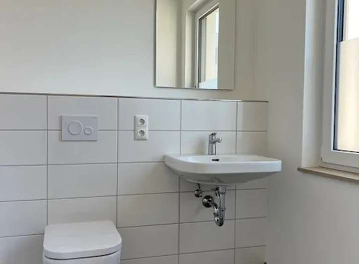 Dieses moderne Reihenmittelhaus in Erstbezug überzeugt durch eine hochwertige Ausstattung und ein durchdachtes Wohnkonzept. Die Fußbodenheizung sorgt für angenehme Wärme, während das Hauptbad mit Wanne und separater Dusche sowie ein zusätzliches Duschbad und ein Gäste-WC für optimalen Komfort sorgen. Die exklusive Einbauküche von Bosch erfüllt höchste Ansprüche. Hochwertige Design-Vinylböden verleihen den Wohnräumen eine stilvolle Atmosphäre. Das Haus verfügt über eine Terrasse und einen Balkon, die zum Entspannen einladen. Zwei PKW-Stellplätze direkt am Haus runden das attraktive Angebot ab. Diese Immobilie bietet modernes Wohnen in einer naturnahen und dennoch hervorragend angebundenen Lage.