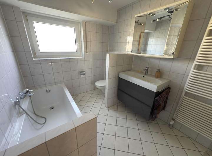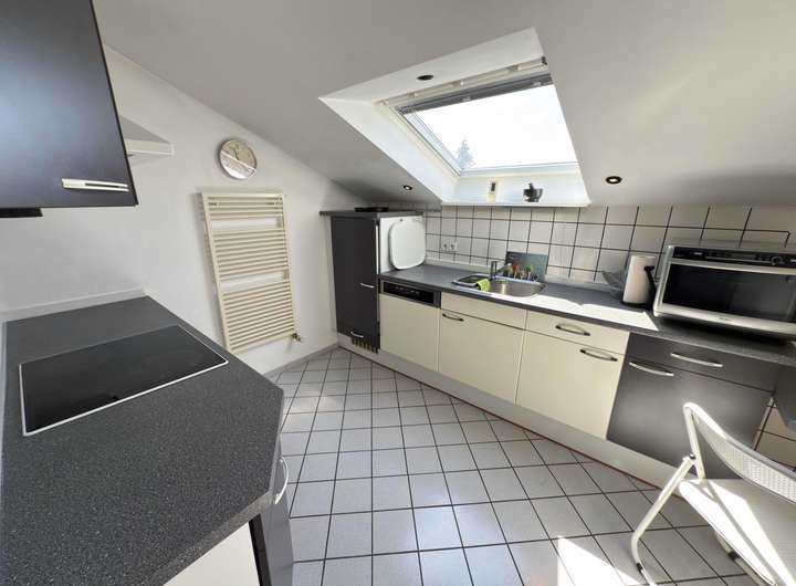 Die ca. 80 m² große Dachgeschosswohnung überzeugt mit modernem, gepflegtem Erscheinungsbild. Sie bietet einen großzügigen Wohn-/Essbereich mit Balkon, ein hell gefliestes Tageslichtbad, eine Küche mit Einbaumöbeln, ein Schlafzimmer ebenfalls mit Balkon sowie ein weiteres Zimmer.