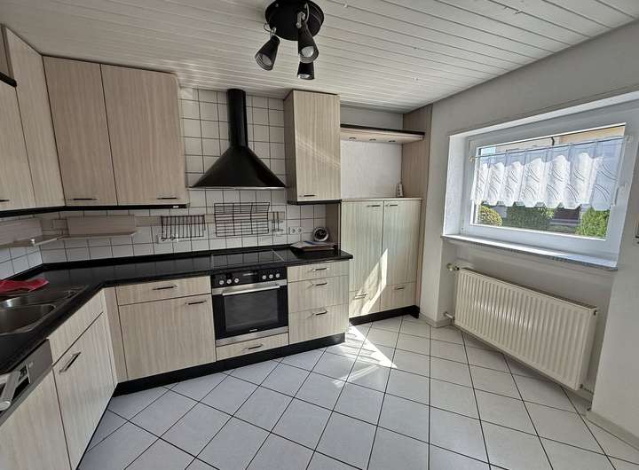 Im Untergeschoss finden sich mehrere Kellerräume, der Heizraum, eine große Garage mit zwei Toren sowie die dritte Wohnung. Diese verfügt über ca. 76 m² Wohnfläche, einen separaten Eingang und bietet Schlafzimmer, Abstellraum, ein hell gefliestes Tageslichtbad, eine Küche mit Einbaumöbeln sowie einen großzügigen, lichtdurchfluteten Wohn-/Essbereich. Von hier aus gelangen Sie auf die Terrasse und in den großen Garten.