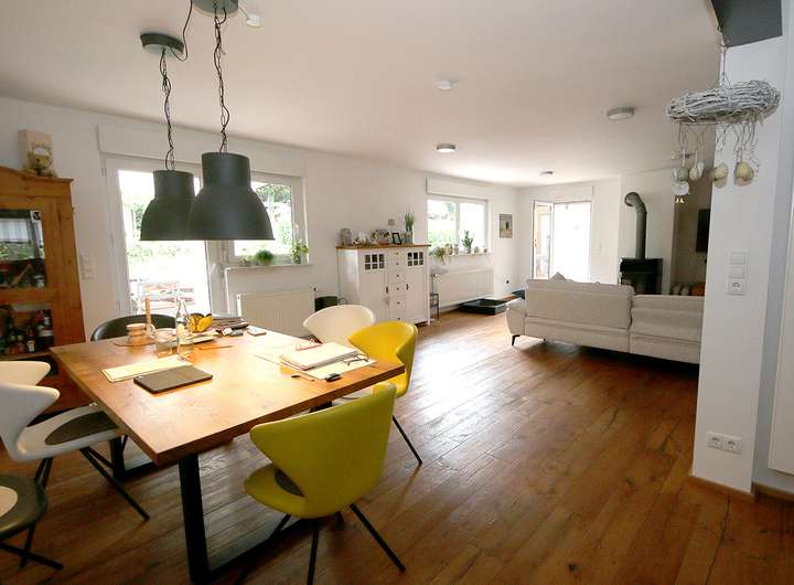 Die im Jahr 1998 erbaute Immobilie präsentiert sich in einem sehr guten und modernisierten Zustand. Ein Großteil der Modernisierungsmaßnahmen erfolgte im Jahr 2018. Im Zuge dieser Arbeiten wurde der Grundriss optimiert und ein offener, heller Wohn- und Essbereich geschaffen, der ein großzügiges Raumgefühl bietet. Hochwertig verlegter Echtholz-Parkettboden im Erdgeschoss sowie im Elternschlafzimmer unterstreicht die Wertigkeit des Hauses und sorgt für eine behagliche Wohnatmosphäre.
