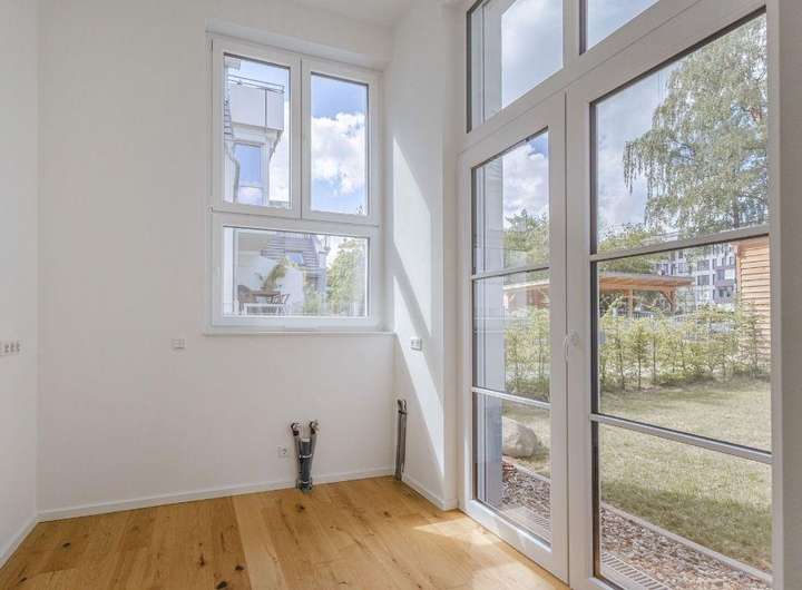 Die Maisonette-Wohnung besticht durch eine durchdachte Raumaufteilung auf zwei Ebenen, die sowohl großzügiges Wohnen als auch flexible Nutzungsmöglichkeiten erlaubt. Mit einer Gesamtfläche von ca. 113,5 m² präsentiert sich die Einheit hell, freundlich und mit direktem Zugang zur Terrasse und zum privaten Garten. Ein hochwertiger Parkettboden unterstreicht den einladenden Charakter der Wohnräume und sorgt für eine warme, behagliche Atmosphäre.