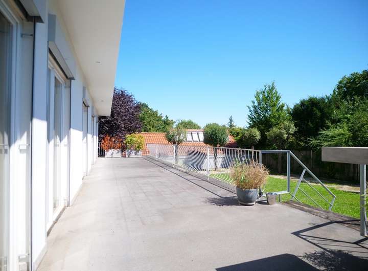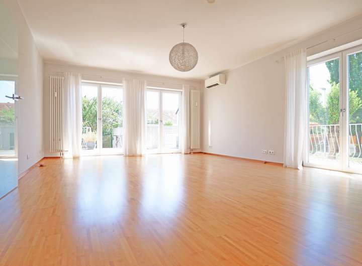 Die Hauptwohnung im Erdgeschoss mit angeschlossenem Untergeschoss bietet auf rund 260 m² Wohn- und Nutzfläche ein großzügiges Zuhause für anspruchsvolle Familien. Ein hochwertiger Parkettboden, ein eleganter Kaminofen sowie eine Klimaanlage schaffen ein Ambiente, das gleichermaßen stilvoll wie komfortabel ist. Mittelpunkt ist der lichtdurchflutete, offene Wohn- und Essbereich mit direktem Zugang zum exklusiven Gartenanteil von ca. 550 m² – eine Oase für Entspannung, Freizeit und gesellige Momente.