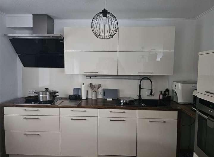 - Einbauküche mit Backofen, Kühlschrank und Kücheninsel