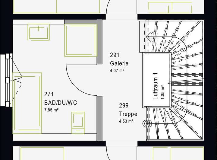 - massa Freiraum = Wohnraumhöhe 2,75 m im EG und DG serienmäßig