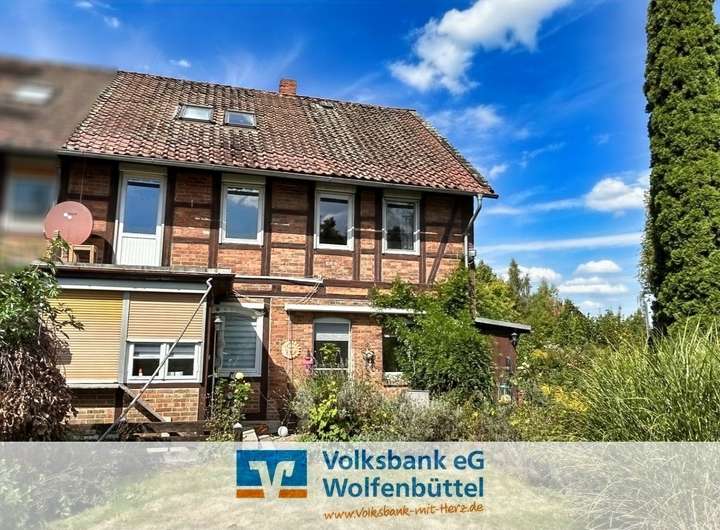 Diese ca. 1920 in Fachwerkbauweise errichtete Doppelhaushälfte mit zwei abgeschlossenen Wohnungen befindet sich in naturnaher Lage in Kissenbrück-Hedwigsburg. Die beiden Haushälften wurden 1988 in Wohnungseigentum aufgeteilt.
