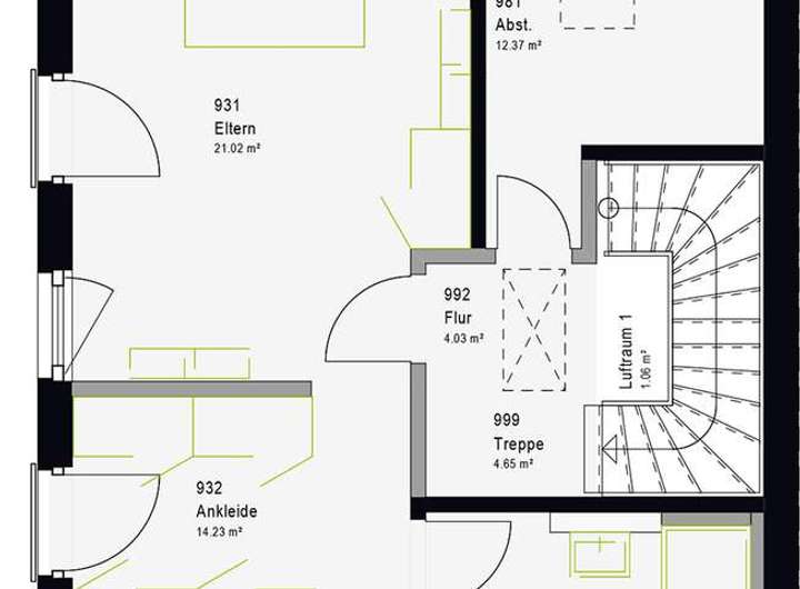 - massa Freiraum = Wohnraumhöhe 2,75 m im EG und DG serienmäßig