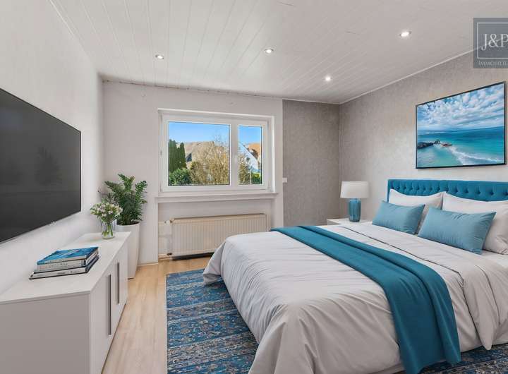 Im Erdgeschoss erwartet Sie eine ca. 80 m² große, moderne 3-Zimmer-Wohnung mit einer großzügigen Einbauküche, einem hellen Tageslichtbad, einem geräumigen Schlafzimmer sowie einem großen Wohnzimmer mit direktem Zugang zum Wintergarten, der erst 2021 errichtet wurde. Der Wintergarten kann geöffnet werden und bietet in Kombination mit dem Garten die ideale Grundlage für Grillfeste mit der Familie und Freunden. Im Obergeschoss finden Sie eine etwa 76 m² große 4-Zimmer-Wohnung mit drei gut geschnittenen Schlafzimmern, einem freundlichen Wohnzimmer mit Zugang zum Balkon, einer Einbauküche und ebenfalls einem Tageslichtbad – auch hier wurde 2017 umfassend modernisiert. Der Balkon der Obergeschosswohnung bietet neben einem schönen Platz zum Sonnen auch eine angebrachte Wendeltreppe für den direkten Zugang zum Garten. Das Dachgeschoss beherbergt eine rund 50 m² große 2-Zimmer-Wohnung, bestehend aus einem gemütlichen Schlafzimmer, einem Tageslichtbad sowie einem offenen Wohn- und Essbereich mit angrenzender Küche.