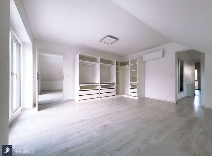 Im Obergeschoss befindet sich das private Refugium: ein Elternschlafzimmer mit eigener Ankleide und Zugang zum luxuriösen Masterbad mit freistehender Wanne, großer Dusche und Doppelwaschtisch. Zwei weitere Zimmer lassen sich flexibel als Kinder-, Gäste- oder Hobbyräume nutzen. Ein besonderes Highlight ist die über der Garage angelegte, großzügige Dachterrasse, die zusätzliche Freifläche bietet und zum Verweilen einlädt.