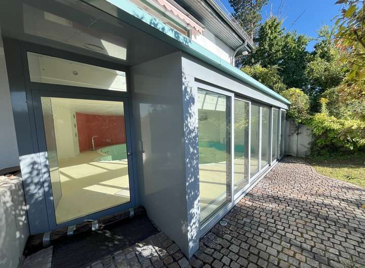 Ein Highlight der Villa ist der luxuriöse Innenpool, der das ganze Jahr über für Entspannung sorgt. Durch den 2006 angebauten Glaserker genießen Sie voll Freisicht und echtes Urlaubsfeeling. Von hier gelangen Sie direkt in den plateauänlich angelegten Garten auf der Westseite. Für das Urlaubsfeeling sorgt ein großer, nicht einsehbarer Garten auf der Ostseite der von dem in L- Form gebauten Haus umgeben wird. Hier verbringen Sie wohltuende Momente im Sommer und werden diese Lage nie mehr missen wollen.