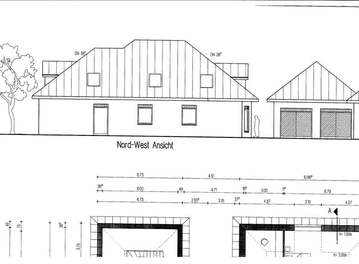 Eine große Doppelgarage mit ausgebauten Obergeschoss wo sich auch die Heizungsanlage befindet bietet viel Platz für Ihren Fuhrpark.
