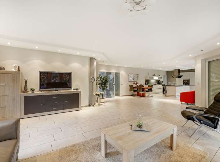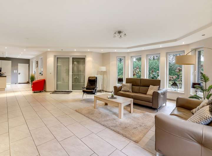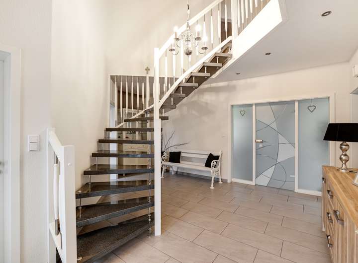 Schon beim betreten dieses Hauses werden Sie begeistert sein von der großen offenen Eingangsdiele mit der hochwertigen Marmortreppe und offener Galerie im Obergeschoss. Das große Wohn/Esszimmer mit den großen lichtdurchfluteten Fenster Elementen lässt absolut keine Wünsche offen.