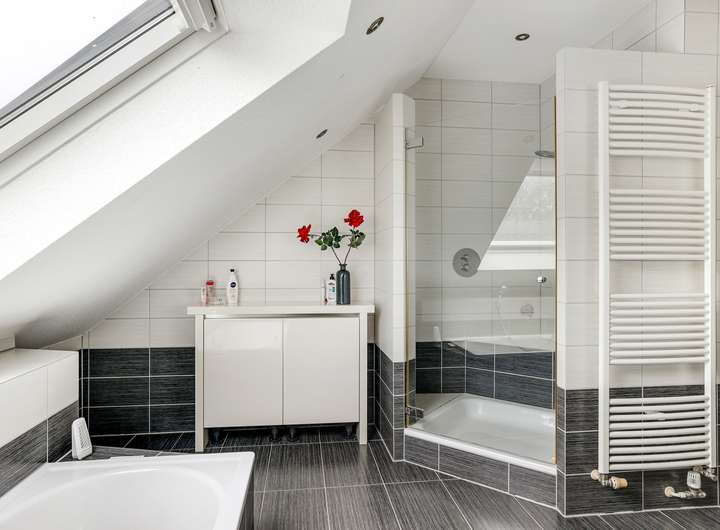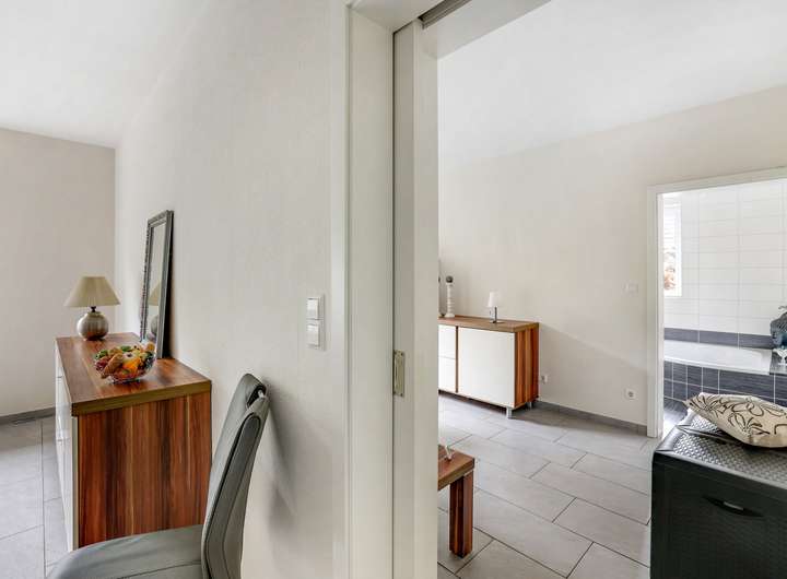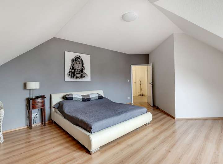 Im Obergeschoss finden Sie wiederum ein hochexklusives Bad sowie mehreren Schlafzimmer mit Ankleiden.