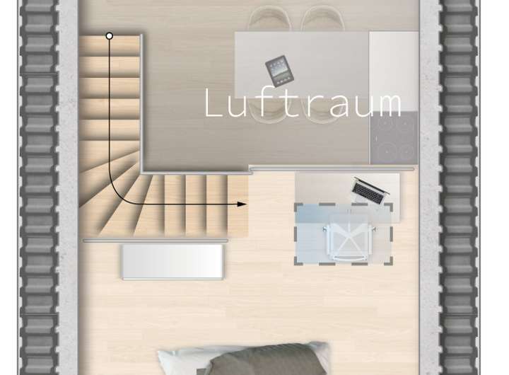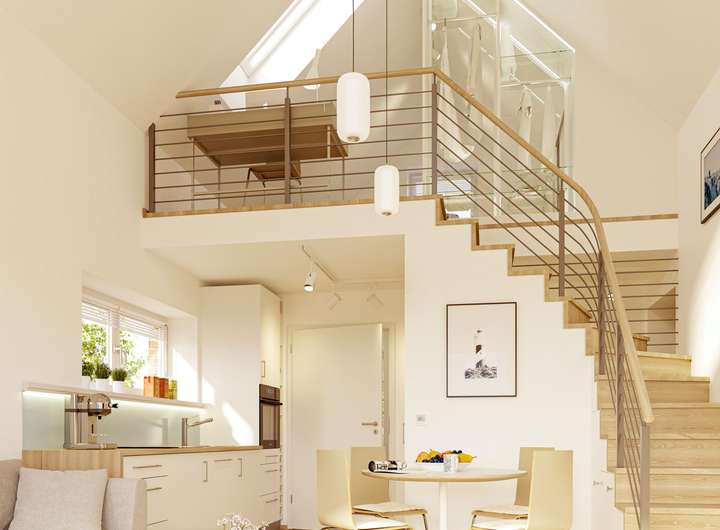 Eine Treppe mit praktischen Staumöglichkeiten (optional) führt auf die großzügige Galerie im Obergeschoss.