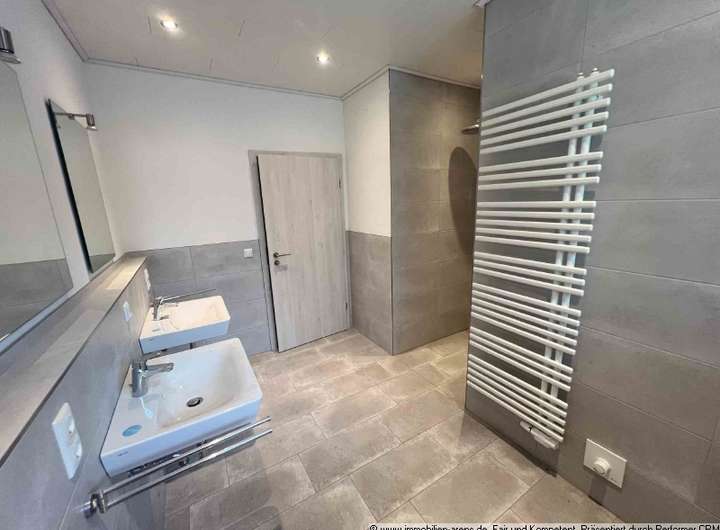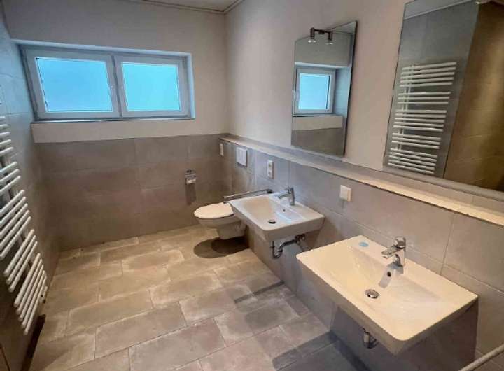Gaszentralsammelheizung für das gesamte Wohnhaus. Neue Kunststofffenster mit elektronischen Außenrollläden. Fußböden: moderne Fliesen im Badezimmer, im übrigen hochwertiger Vinylbodenbelag. Modernisiertes Badezimmer mit Fussbodenheizung und ebenerdiger Dusche, WC, 2 Handwaschbecken, Handtuchheizkörper. Sep. Gäste-WC im Treppenhaus. Hauswirtschaftsraum mit Podest für Waschmaschine und Trockner und Zugang zur Garage. Wintergarten mit 3 großen Schiebetüren.