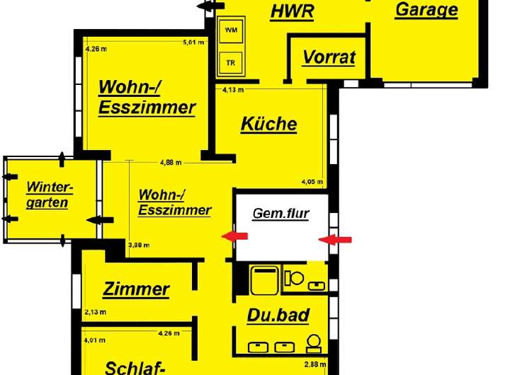 Erdgeschosswohnung in einem gepflegten Zweifamilienhaus. Diese besteht aus Wohnzimmer mit Zugang zum Wintergarten, Schlafzimmer, Kinderzimmer, Arbeitszimmer, Küche mit angrenzendem Vorratsraum, Hauswirtschaftsraum, Badezimmer sowie Gäste-WC. Die Wohnfläche beträgt rd. 135 m² zzgl. ca. 20 m² Wintergarten. Aufteilung siehe Grundriss. Mitvermietet wird der Garten sowie ein Geräteraum, die Garage, ein Kfz-Stellplatz im Carport und ein weiterer Kfz-Außenstellplatz.