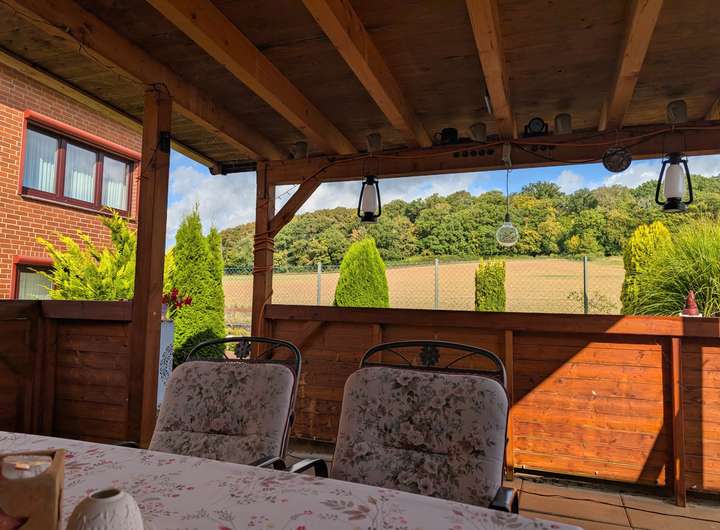 derzeit aufgeteilt in 2 Wohnungen mit ca. 85m² Wohnfläche mit jeweiliger Küche, Wohnzimmer, Schlafzimmer oder Kinderzimmer. Die überdachte Terrasse ist ca. 20m² groß und der Clubraum mit Heizung und ca. 12m² macht die Familienfeiern auch bei schlechten Wetter zum besonderen Ereignis. Der freie Blick in den Wald sorgt für ein entspanntes Feeling.