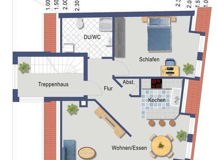 • Wohnfläche Dachgeschoss: ca. 56,35 m²