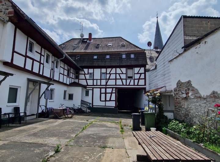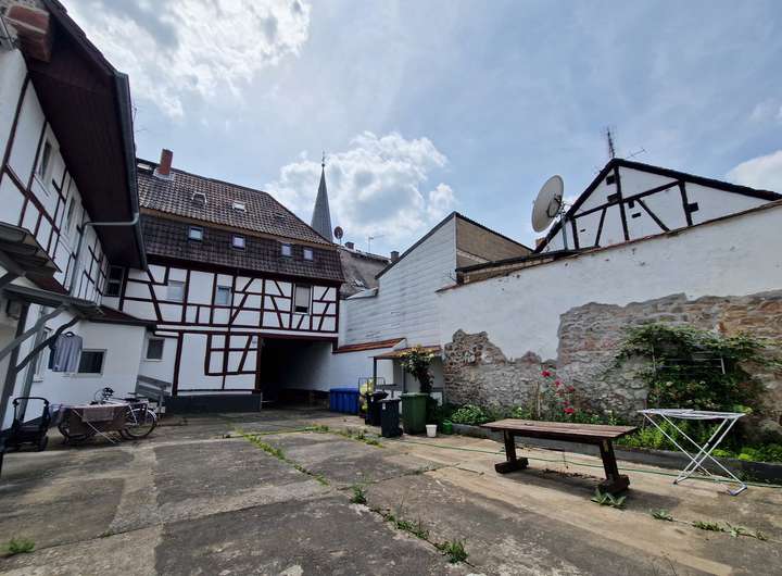 Das zu verkaufende 11-Parteienhaus befindet sich auf einem 537m² großen Grundstück in zentraler und begehrter Lage von Groß-Zimmern. Das Wohnhaus entstammt ca. dem Jahr 1870 und wurde 1935 um einen Anbau erweitert. Die Baujahre des Nebengebäudes mit Doppelgarage, sowie des neueren Anbaus daneben sind unbekannt. Die voll vermietete Wohnanlage verfügt über drei Etagen mit insgesamt ca. 448m² Wohnfläche. Weitere Nutzflächen finden sich im Keller, sowie dem Nebengebäude. Hier parken bis zu zwei Autos witterungsgeschützt in der integrierten Doppelgarage. Abgerundet wird die Immobilie von einem gepflasterten Innenhof samt Zugangstor. Ein Großteil der Anlage wurde in Fachwerktechnik errichtet.
