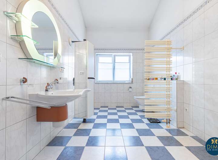 Die Immobilie verfügt über insgesamt 5 Zimmer, darunter drei Schlafzimmer und ein Badezimmer. Der Keller bietet zusätzlich 60 m² Nutzfläche, die vielseitig genutzt werden können. Die großzügig geschnittenen Räumlichkeiten lassen viel Raum für individuelle Gestaltungsmöglichkeiten und bieten ausreichend Platz für eine Familie oder Paare.