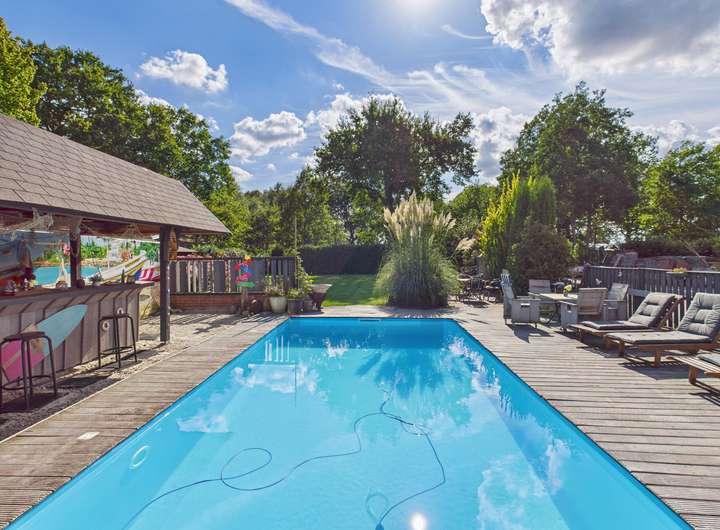 Außengelände: ca. 4.579 m² Grundstück mit gepflegtem Garten, Swimmingpool und überdachter Poolbar. Die großzügige überdachte Terrasse am Haupthaus lädt zum Entspannen und Verweilen ein; zudem stehen auf dem Grundstück mehrere Stellplätze für PKW zur Verfügung.