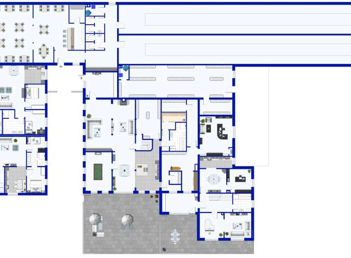 Zusätzlich zu den Wohnflächen verfügt das Anwesen über umfangreiche Nutzflächen von insgesamt ca. 529 m². Hierzu zählen insbesondere zwei große Räume, die gewerblich genutzt werden könne mit angrenzendem Club-/Partyraum sowie Sanitäranlagen. Diese Bereiche werden aktuell als Lager genutzt, doch bieten sie erhebliches Potenzial für Freizeit oder Gewerbe: Ob als privater Partyraum, Vereinsheim oder zur gewerblichen Nutzung – die Möglichkeiten sind vielfältig.