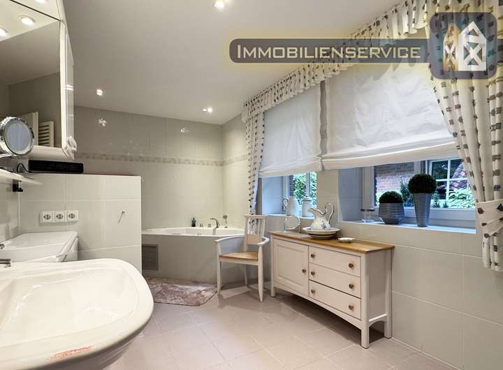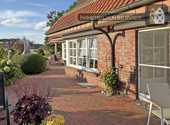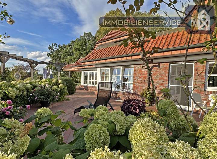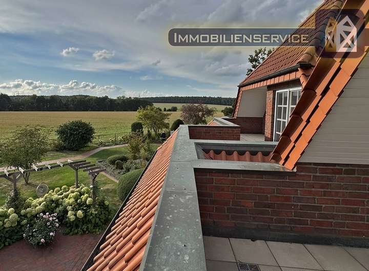 Diese repräsentative Landhausanwesen wurde von einem renommierten Löhner Architekten entworfen und überzeugt durch eine außergewöhnliche Architektur. Rund 347 Quadratmeter Wohnfläche mit großzügigen, offenen und lichtdurchfluteten Räumen sowie zwei separat erschlossenen Einliegerwohnungen. Die hochwertige Ausstattung, die sorgfältige Materialwahl und die detailverliebte Bauweise sind perfekt aufeinander abgestimmt und schaffen ein Wohnambiente von zeitloser Eleganz. Großzügige Holzsprossenfenster rahmen den Panoramablick zur Ulenburg und unterstreichen die besondere Lage am Rande des Naturschutzgebietes.