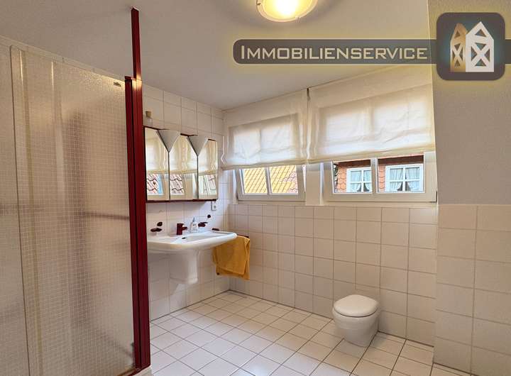 Die Bäder sind mit modernen Fliesen, hochwertigen Armaturen und einer komfortablen Ausstattung versehen. Zwei großzügige Loggiabalkone ermöglichen einen Panoramablick bis hin zur historischen Uhlenburg und erweitern den Wohnraum ins Freie.