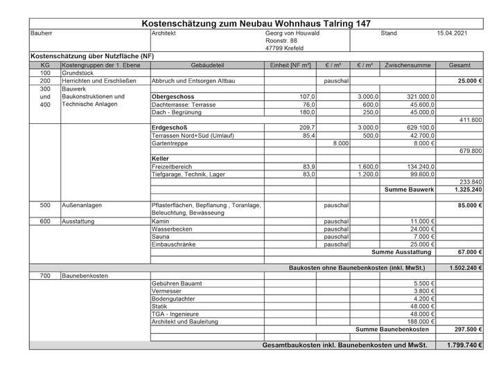 Der Entwurf des renommierten Architekturbüros von Houwald zeigt Ihnen eine exklusive Planung, die bei Bedarf nach eigenen Wünschen angepasst werden kann. Das Baugrundstück wird verkauft unter der Voraussetzung, den Architekten-Entwurf des Wohnhauses umzusetzen.