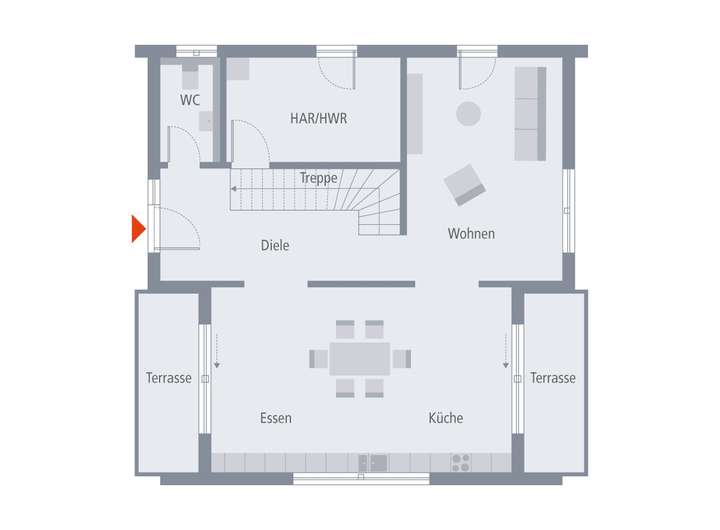 Dieser Architektenentwurf ist ein Planungsvorschlag und dient der Inspiration und Orientierung. Grundrisse, Architektur-Extras, Ausbau- und Effizienzhaus-Stufen werden individuell an Ihre Wünsche und Bedürfnisse angepasst.