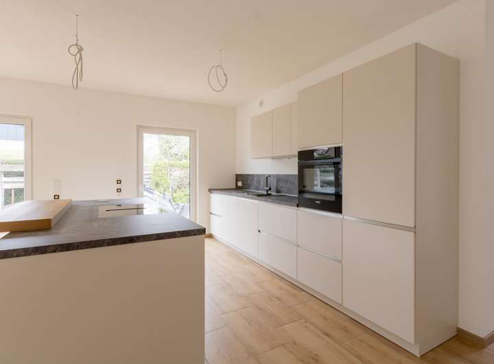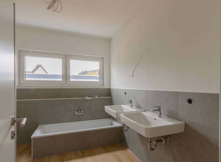 Ein Grundriss zum Nachvollziehen der Raumaufteilung liegt bei. Die beiliegenden Visualisierungen zeigen die Bäder und die Küche, wie sie im fertigen Zustand aussehen sollen.