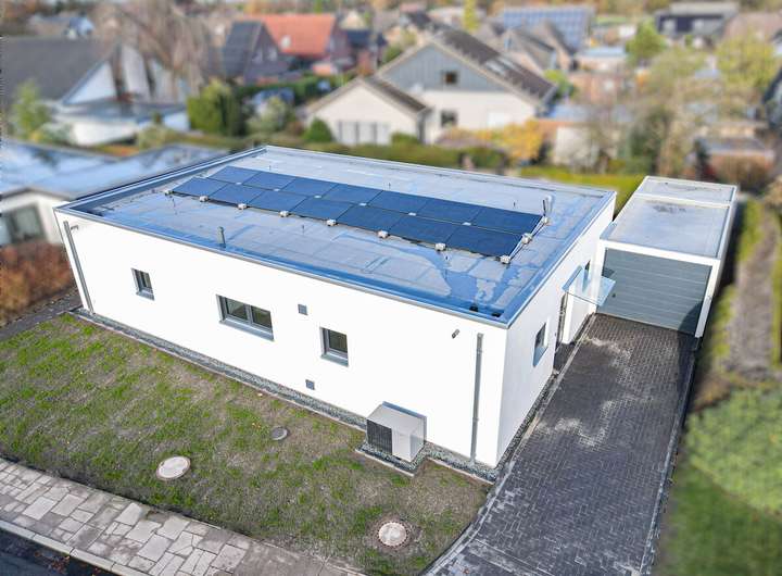 Dieser freistehende Flachdachbungalow im Herzen von Ganderkesee bietet Ihnen moderste Details wie eine Luftwärmepumpe, eine Lüftungsanlage, eine Fußbodenheizung, eine offene Küche mit Kochinsel oder ein Badezimmer mit ebenerdiger Dusche sowie ein GWC mit Dusche.