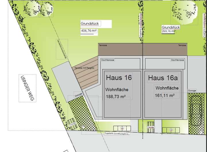 Die Baugenehmigung für eine Doppelhaushälfte mit ca. 161 m² Wohnfläche, liegt vor.