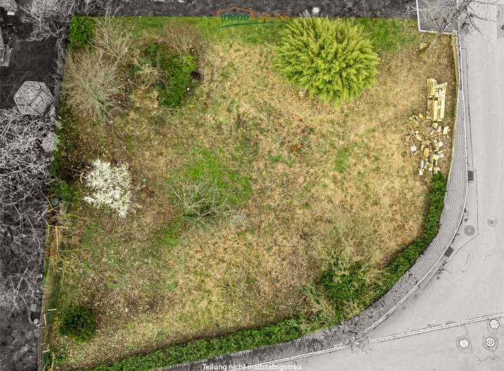 Das ursprüngliche Grundstück mit 806 m² wurde hier aufgeteilt. Z...