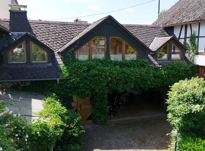 Über die charmante, schön begrünte Hofeinfahrt gelangen Sie zu den Gebäuden.