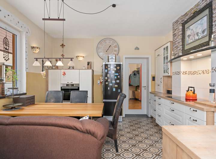 Dieses großzügige Einfamilienhaus besticht durch eine Wohnfläche von ca. 336m² und befindet sich in einem äußerst gepflegten Zustand. Das Haus ist in zwei Wohneinheiten sowie eine Einliegerwohnung im Souterrain aufgeteilt, wodurch es vielseitige Nutzungsmöglichkeiten bietet – ideal für Familien oder als Mehrgenerationenhaus. Im separaten Bereich des Souterrains befindet sich eine Einliegerwohnung mit drei Schlafzimmern, einem gemütlichen Wohnzimmer, einem Badezimmer sowie einem Gäste-WC. Zusätzlich gibt es im Souterrain vier weitere Räume, die vielseitig genutzt werden können, sowie ein weiteres WC. Der Hauswirtschaftsraum mit Heizungsanlage ist ebenfalls hier untergebracht und bietet ausreichend Stauraum. Die Wohnung im Hochparterre verfügt über insgesamt fünf Zimmer, von denen eines einen praktischen Ankleidebereich bietet. Das großzügige Wohnzimmer lädt zum Verweilen ein, während die neue moderne Einbauküche und das neue moderne Badezimmer keinerlei Wünsche offenlassen. Eine Maisonette-Wohnung verteilt sich über das Ober- und Dachgeschoss. Im Obergeschoss befinden sich ein Wohnzimmer, ein Badezimmer, ein Schlafzimmer sowie eine offene Küche mit großzügigem Essbereich. Zudem gibt es einen Abstellraum und den Zugang zum Balkon. Vom Balkon aus genießt man einen herrlichen Ausblick in den schön angelegten Garten. Im Dachgeschoss befinden sich zwei weitere Zimmer sowie ein kleinerer Raum, der als Büro oder zusätzlicher Stauraum genutzt werden kann sowie ein zusätzliches Badezimmer. Das Haus verfügt über zwei Garagen sowie zusätzlich ein Neugebautes Carport und einen großen, gepflegten Garten, der viel Platz bietet. Ob für spielende Kinder, gesellige Grillabende oder einfach zum Entspannen – dieser Garten lädt zu unvergesslichen Stunden mit Familie und Freunden ein.