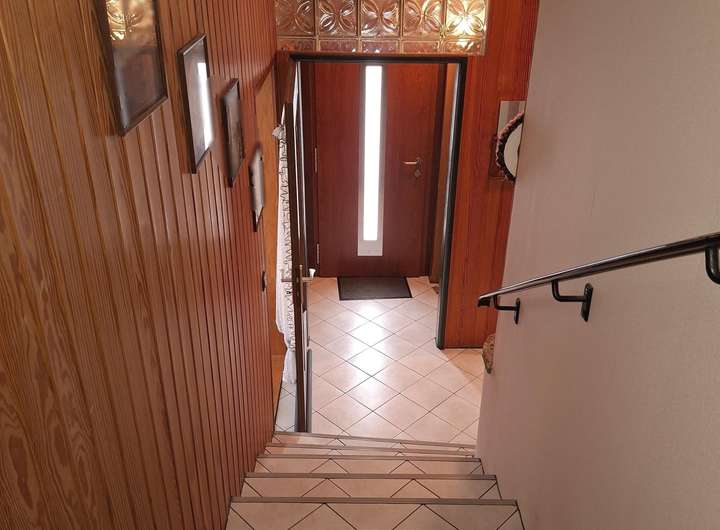 Die Doppelhaushälfte ist gepflegt. Badezimmer und beide Gäste- WC verfügen über Tageslichtfenster. Das Haus verfügt über 2- fach verglaste Kunststofffenster mit Außenrollläden. Die Giebelseite des Hauses wurde verschiefert. Das Bad im Dachgeschoss (Obergeschoss) wurde saniert, ebenso das Gäste- WC im Erdgeschoss. Badezimmer und Gäste- WC im Erdgeschoss sind gefliest. Im Gäste-WC im Dachbodenbereich wurde ein Design PVC ausgelegt. Der Küchen- und Esszimmerbereich und die Flurbereiche im Erd- und Dachgeschoss (Obergeschoss) sind gefliest. Die weiteren Wohnbereiche sind mit Teppichfliesen ausgelegt worden. Von der Küche gelangt man auf den überdachten Terrassenbereich. Die Terrasse wurde in 2022 mit neuen Bodenfliesen ausgestattet. Über ein paar Stufen gelangt man in den Garten. Die Treppe zum Dachgeschoss (Obergeschoss) ist gefliest, der Treppenbereich zum ausgebauten Dachboden und in den Keller ist mit Betonstufen ausgestattet. Der Garten ist eingezäunt, bietet Privatsphäre und viel Platz für Kinder und Haustiere. Zwischen den Doppelhaushälften ist z.T. eine gemauerte Wand mit Zaunelementen aufgebaut worden, somit hat man auch den kompletten Sichtschutz zur anderen Doppelhaushälfte. Ein Außenwasseranschluß befindet sich an der Garagenwand. Es erfolgte der Einbau mehrerer Außensteckdosen. Das Garagentor ist mittels Fernbedienung zu öffnen. 2018 wurde die Auffahrt neu gepflastert, Der Eingangsbereich wurde neu gestaltet, in diesem Rahmen wurde eine neue Eingangstür eingebaut und die Eingangsstufen wurden neu gefliesst. Ein Glasfaseranschluß und eine SAT- Schüssel mit 4 Anschlüssen und Reciever ist vorhanden.