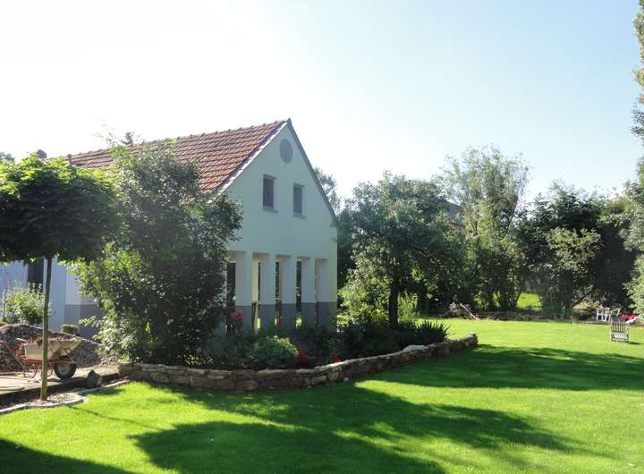 Wir vermieten das romantische Nebenhaus eines liebevoll, sanierten, Landhauses mit herrlichem RundumBlick auf begrünten Innenhof, dem Dorfweiher, Wiese oder Rosengarten. Bei der Sanierung wurde sehr viel Wert auf ökologische Bauweise geachtet.