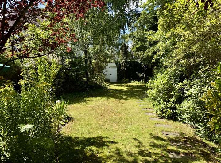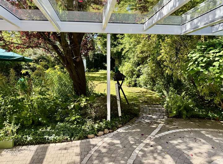 Der Außenbereich begeistert mit einem wunderbaren, idyllischen Garten samt Teich, der als grüne Oase Entspannung und Erholung mitten im Alltag schenkt.