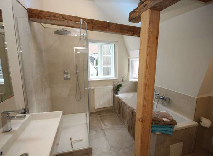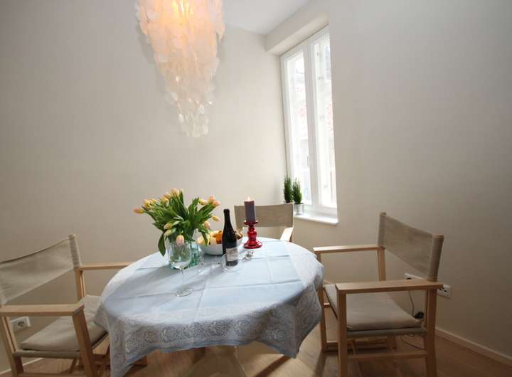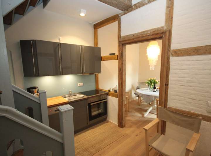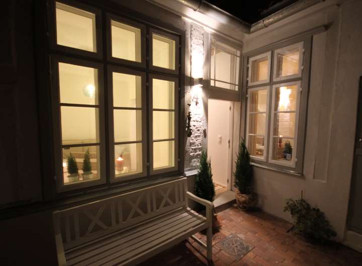 Die exklusive Ausstattung des Ganghauses auf der Lübecker Altstadtinsel lässt kaum Wünsche offen. Bei der Einrichtung wurde besonderen Wert auf gehobenes Ambiente und die Verwendung hochwertiger Materialien gelegt. - 3 Zi., 2 Etagen zzgl. Spitzboden, Gäste-WC, Vollbad, Schuppen, ca. 65m² Wfl./70m²Nfl. - zwei Schlafplätze im Wohnzimmer auf der Schlafcouch 1,6 × 2 Meter - Esstisch mit Platz für 4 Personen - Einbauküche mit Geschirrspüler, Herd, Kühlschrank, Mircowelle - Geschirr für sechs Personen - Obergeschoss mit Vollbad mit Dusche und Wanne - Einbau – Kleiderschrank - Schlafzimmer im Obergeschoß für zwei Personen im geräumigen Boxspring Bett 2 × 1,8 m - begehbarer Kleiderschrank - Reisekinderbett - Föhn, Bügeleisen - Waschmaschine und Trockner - Satellitenfernsehen international - DVD-Abspielgerät - Internet Highspeed, WLAN - Telefon Anschluss - im gesamten Erdgeschoss Fußbodenheizung mit Eichenparkett - historische Treppe - Parkbank vor dem Haus mit zusätzlich einem Bistrotisch und zwei Stühlen - öffentliches Parkhaus 400Meter entfernt - „Nespresso“ Kaffee-Maschine vorhanden (bitte bei Bedarf Kapseln selbst mitbringen) Die Kosten für Strom sind direkt mit dem Versorger abzurechnen. Die Kaution beträgt 3 Nettomieten.